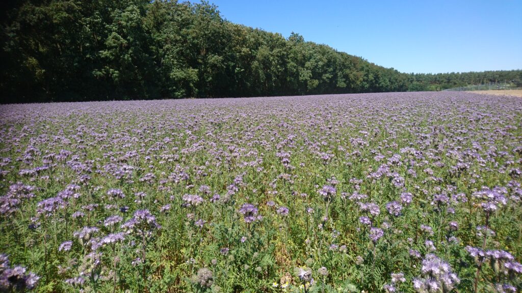 Außerdem haben wir eine langfristige Änderung in unserem Spargel- und Erdbeeranbau initiiert: Bei jedem Acker, der neu bepflanzt wird, säen wir in gewissen Abständen Nützlingsstreifen ein. Die Streifen mit Klatschmohn, Kamille, Kornblumen etc. sollen die Population von Nützlingen unterstützen.