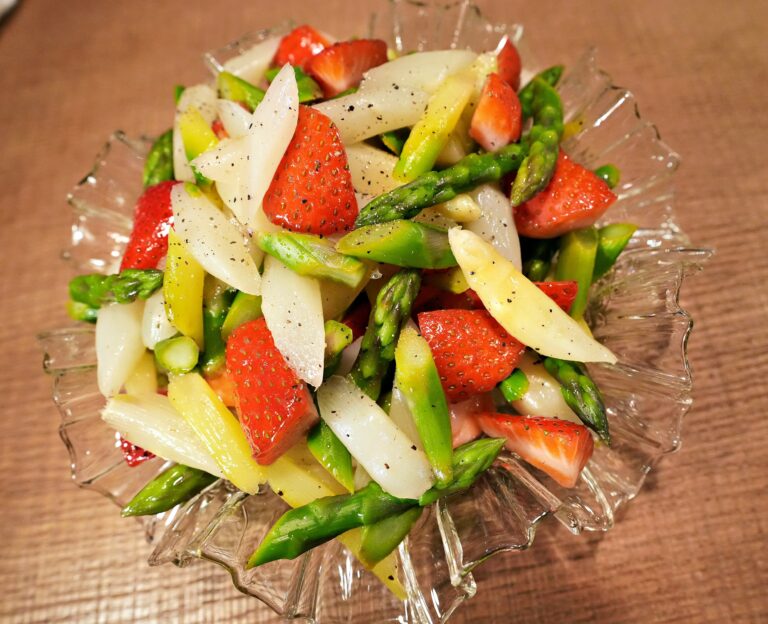 Enden vom Spargel abschneiden, Spargel in 2 cm lange Stücke schneiden und in 3 EL Olivenöl 5 min braten. Auf Küchenpapier entfetten und abkühlen lassen. Die Kartoffeln schälen und in...